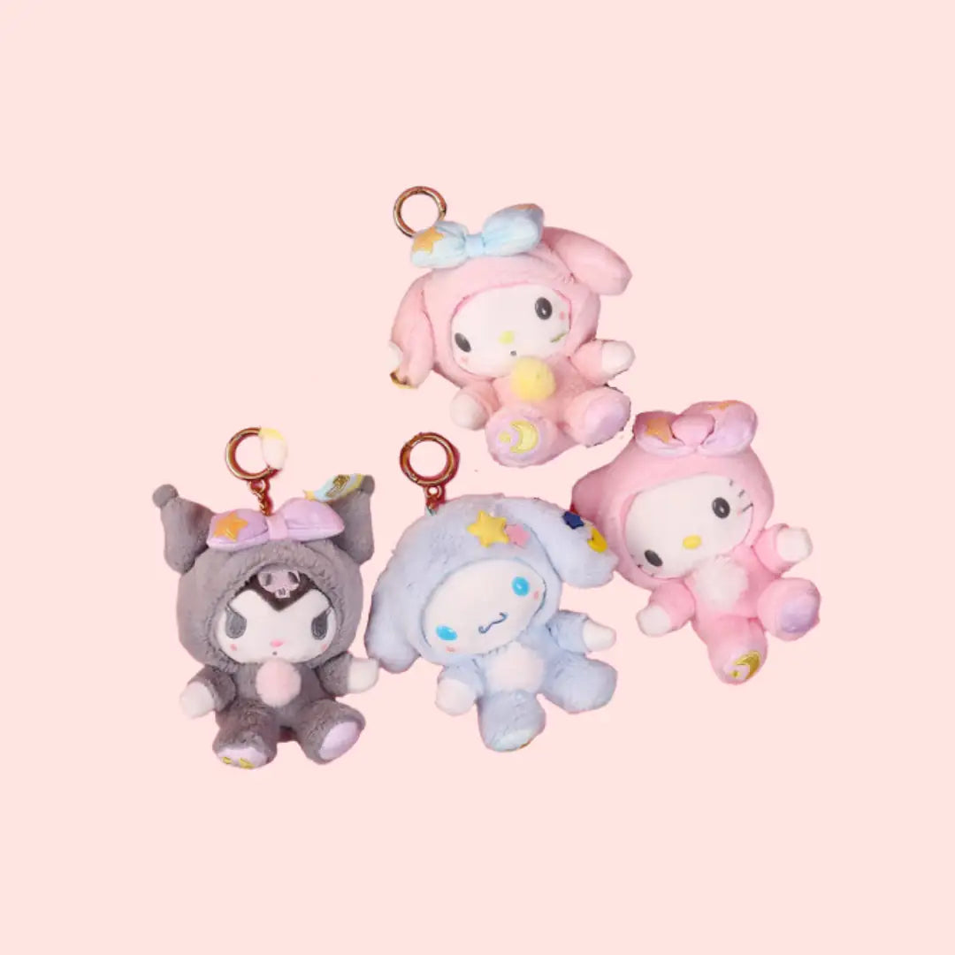 Crafted from high-quality cotton material and filled with soft PP Cotton, each 10CM plushie is not only irresistibly cuddly but also certified CE for safety and peace of mind. Whether you're a fan of Hello Kitty Stars or simply adore cute and kawaii styles, these plushie keychains are sure to delight.