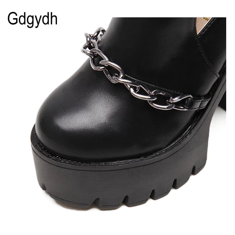 Constructed with premium PU leather and a durable rubber sole, these boots are built to last, with a cozy PU coating ensuring a soft and luxurious feel. The round toe and zipper closure provide a sleek and sophisticated touch, while the chain and buckle decorations add a hint of edgy charm.
