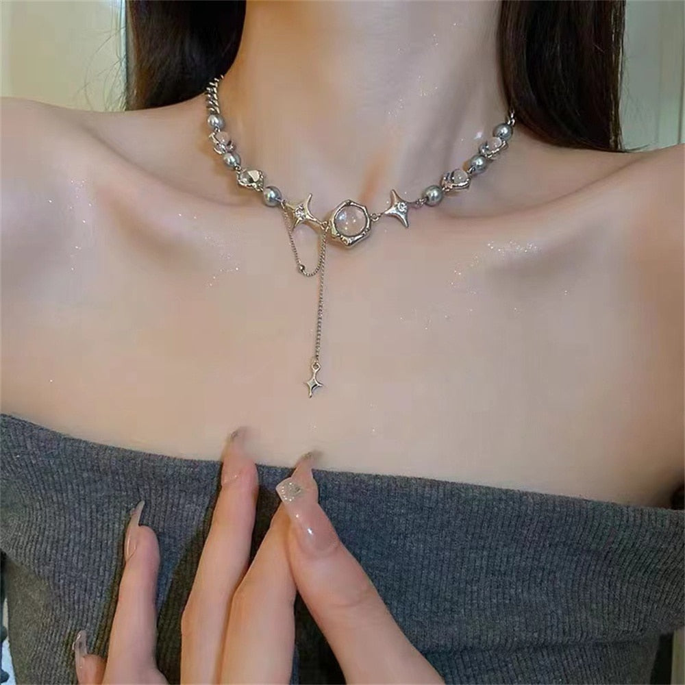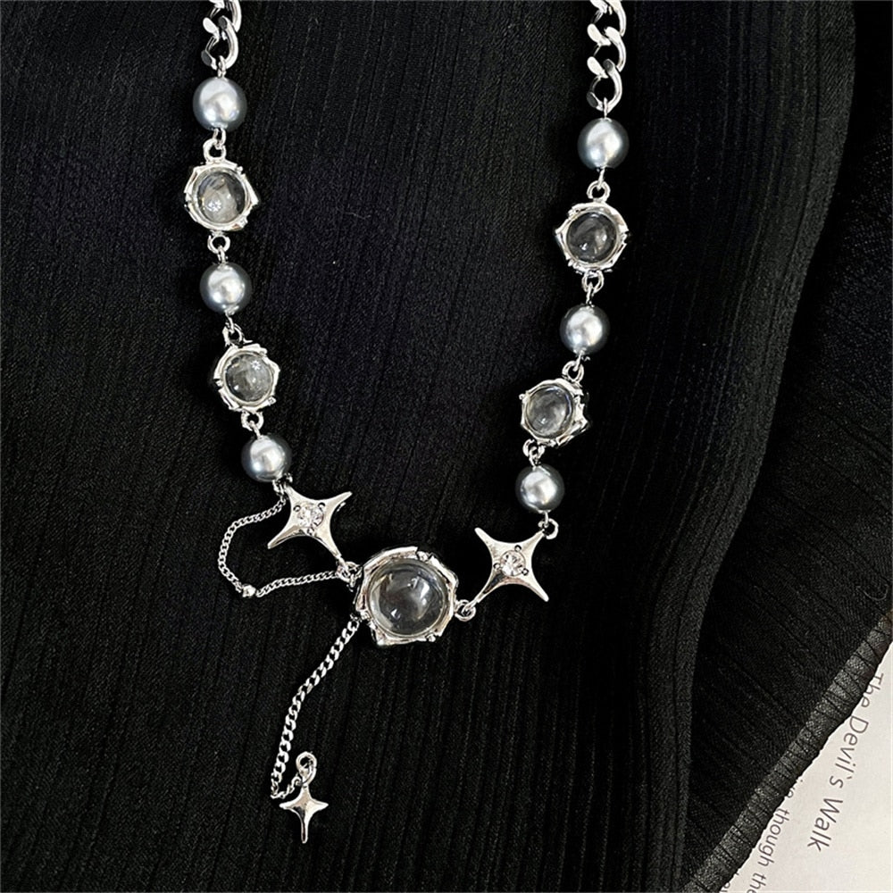 Charm your way through any day or night with our exquisite Star Geometric Crystal Chain Necklace. A timeless classic with a modern twist, this choker necklace is crafted with stainless steel and features a beautiful crystal pendant in a star geometric design. The perfect accessory for any outfit, this sparkling necklace is sure to turn heads and add some serious glamour to your look. Whether you're dressing up for a special occasion or just accenting your everyday style, this fashionable necklace is a must-have addition to your jewelry collection.