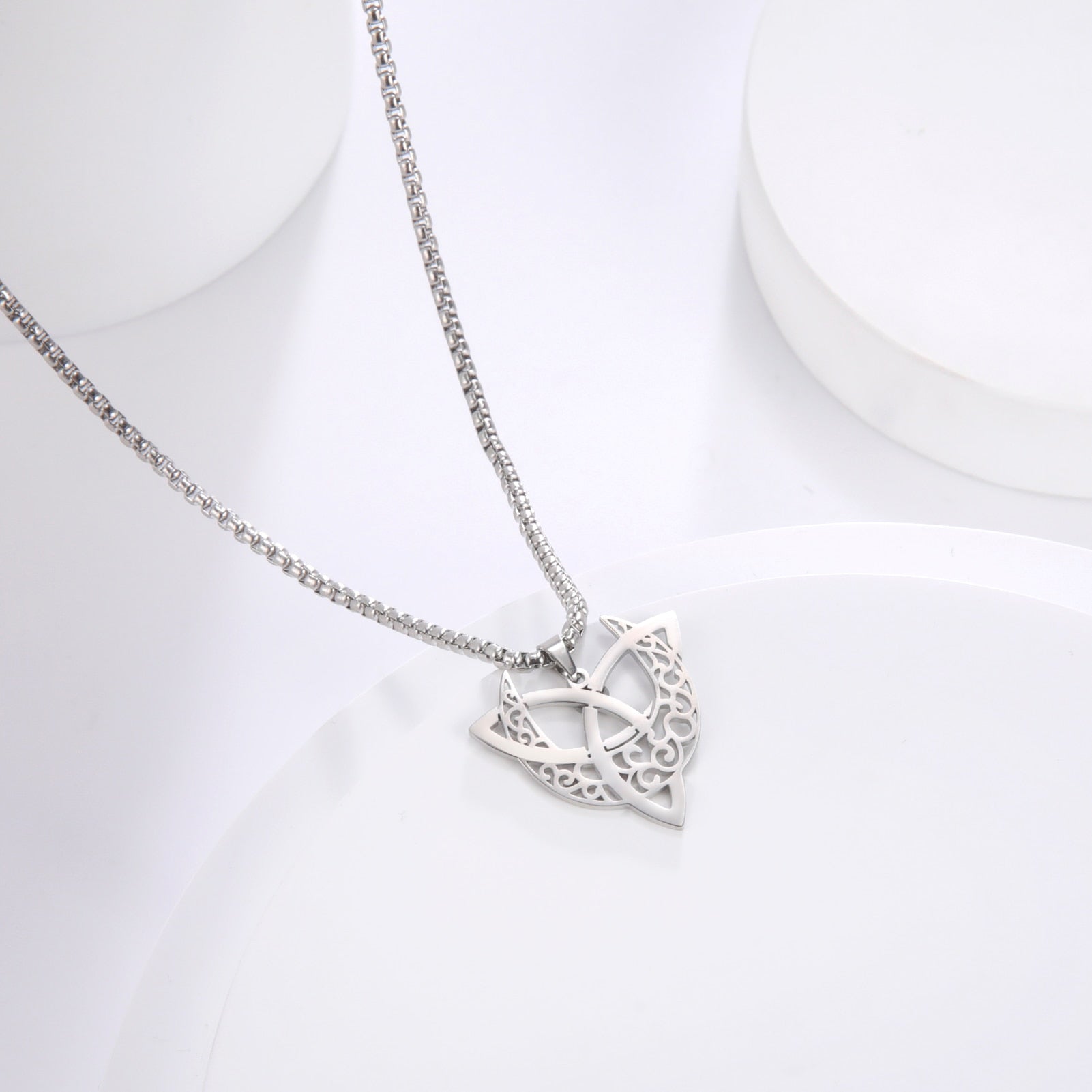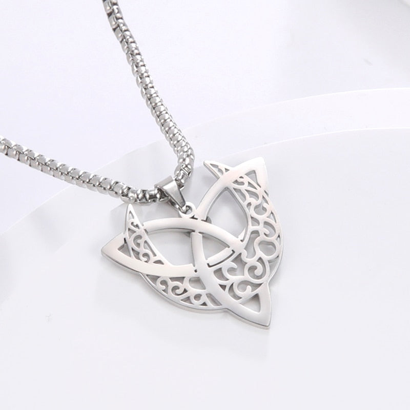 The Triquetra Moon Pentagram Necklace is the perfect addition to any outfit. Crafted from stainless steel with a 60cm chain, this necklace makes for a timeless piece that captures the beauty of the classic pentagram design. The pendant is 29.7 x 29.9 mm in size and takes on a look unlike any other jewelry piece, making it both unique and modern while still being stylish and sophisticated. Plus, its intricate design features have a spiritual background and make it special for any lover of symbolism and mythology alike. The ideal accessory for casual wear or formal occasions, the Triquetra Moon Pentagram Necklace is sure to wow everyone who sees it!